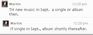 Nova música dos TH em Setembro. Um single ou album por essa altura. Se o single sair em Setembro, o album sairá pouco depois.
