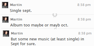 Single em Setembro. O album muito provavelmente em Outubro. Mas alguma música nova (pelo menos o single) em Setembro de certeza.